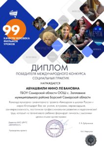 Педагог ГБОУ ООШ с. Заплавное стал победителем международного конкурса социальных практик культурно – гуманитарного Проекта «Киноуроки в школах России и мира»