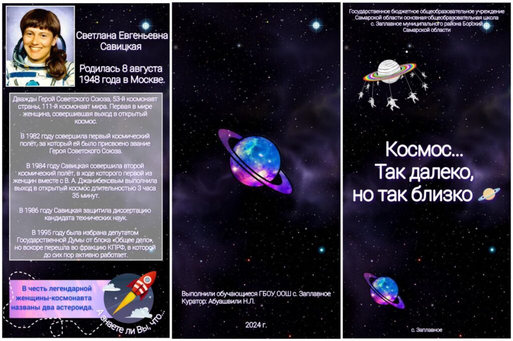 Вместе с классным руководителем Марина подготовила мультипликационный фильм «Первый полёт» о С.Е. Савицкой – первой женщине-космонавте, вышедшей в открытый космос.